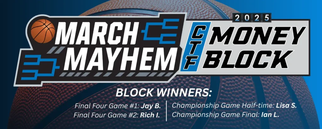 CTF’s March Mayhem Money Block was brought back this year to enjoy the excitement of the NCAA March Madness tournament, while raising $5,000 to support dementia research and awarding four lucky winners a total of $5,000. Thank you to all those who participated and congratulations to our winners!